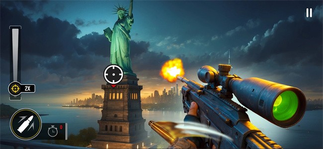1、真实弹道模拟:游戏引入风速、重力、距离等环境因素,子弹飞行轨迹完全遵循物理规律,玩家需调整瞄准镜参数才能精准命中目标,还原真实狙击手的作战思维。