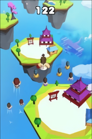1、人群跳跳跳里玩家要操作人物在岛屿间跳跃,并且要在岛屿间收集其他小人,让小人数量不断增多,增加游戏乐趣和挑战性。