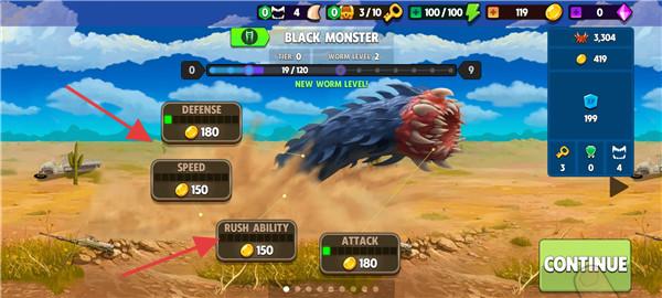3、点开升级界面,我们通过对蠕虫的各个部位进行升级,就可以获得更加强大的能力。