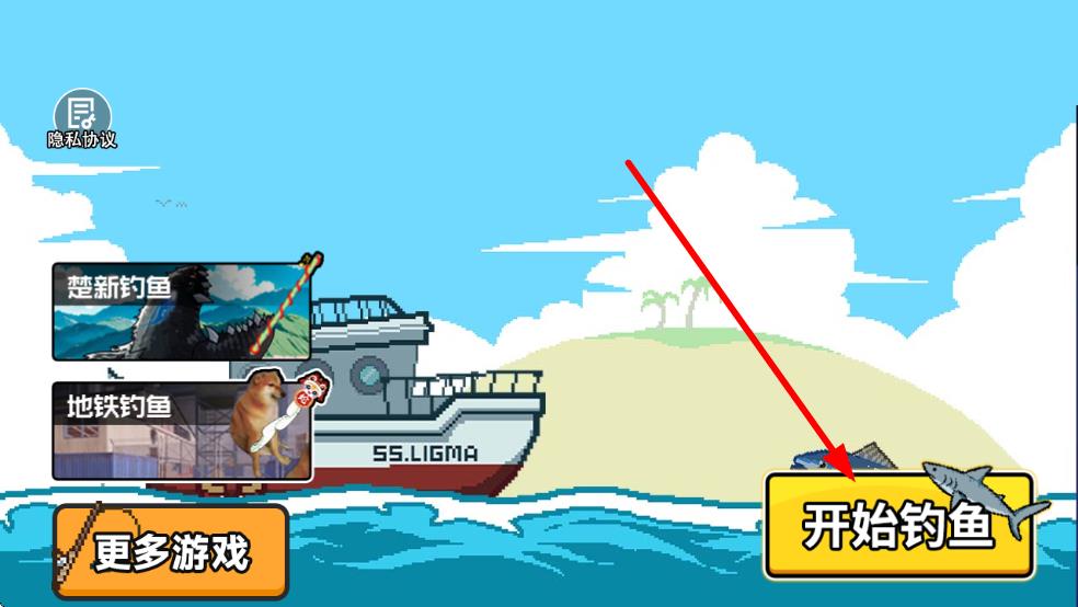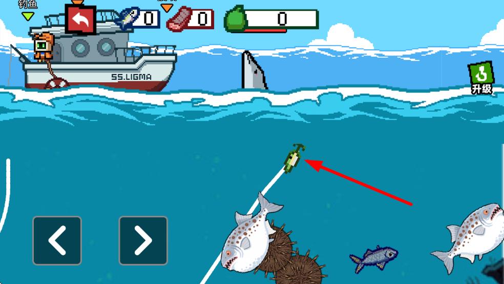 1、打开游戏点击“开始游戏”,进入后选择“开始钓鱼”,操控小船前往海域,点击屏幕投放鱼饵吸引鱼类。