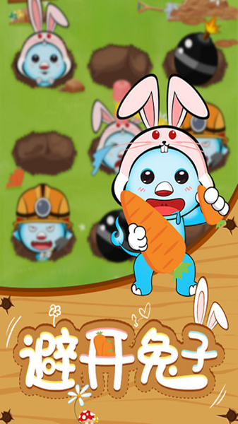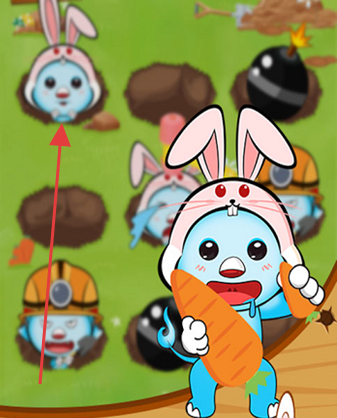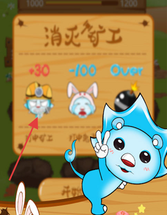 2、击打矿工可获得分数,误击戴兔子帽角色会扣分,还要注意躲避炸弹(出现“Over”标识),避免游戏失败。