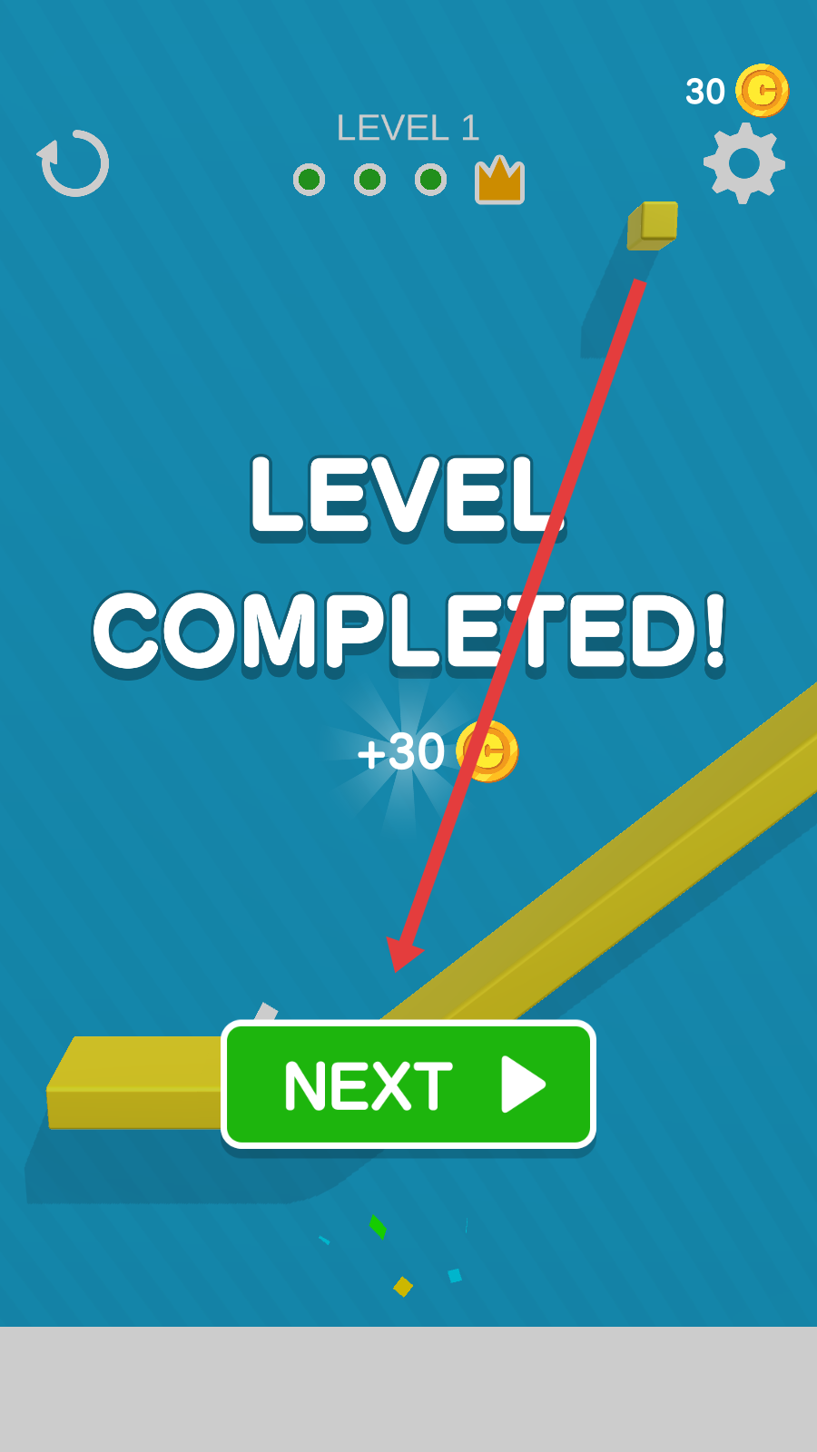 2、成功完成关卡后,点击绿色“NEXT”按钮,进入下一关。