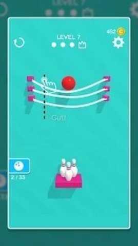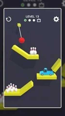 1、物理切割玩法:基于真实物理引擎设计,切断绳子的顺序与角度直接影响保龄球轨迹,需运用几何知识与逻辑推理规划最优路径。