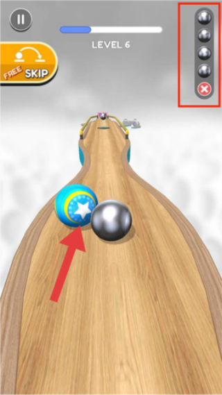 3、在【LEVEL6】关卡时注意躲避蓝色带星小球,同时留意右上角生命数,确保小球顺利前行。