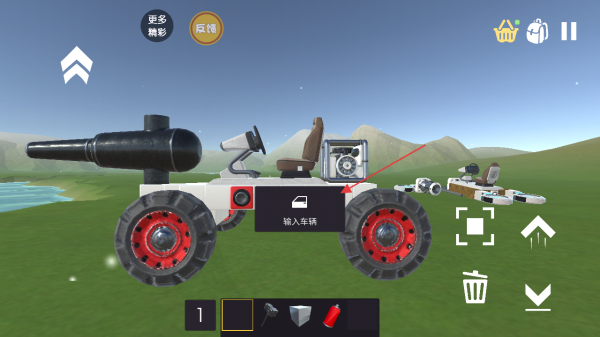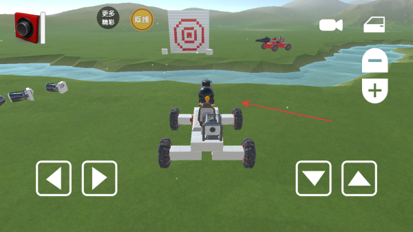 3、3、组装好车辆后,通过屏幕下方的方向键操控车辆移动,依据红色箭头指引,驶向目标区域进行游戏任务。