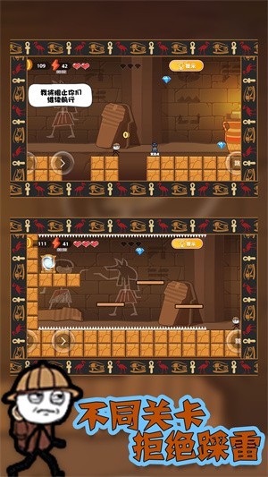 2、角色技能巧用:合理运用解锁角色的特殊技能,应对关卡中的难题,例如有的角色能跳跃更远,有的角色能触发隐藏机关,使用技能轻松过关。