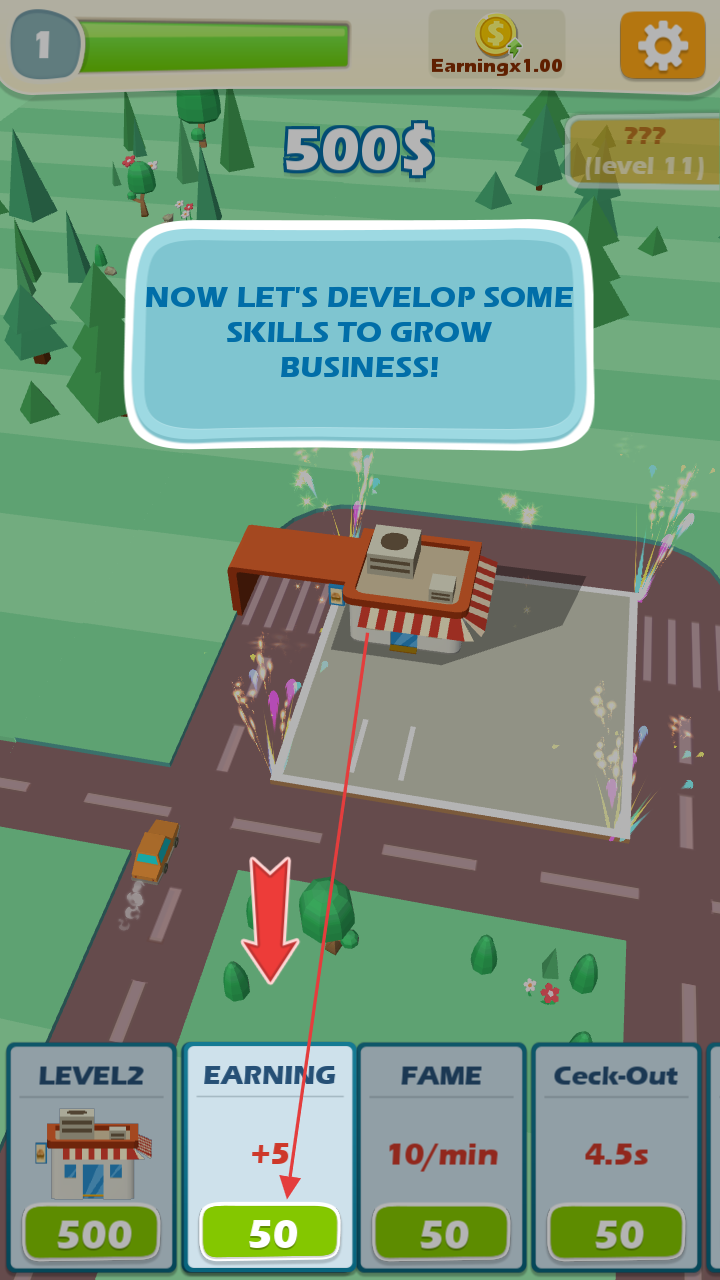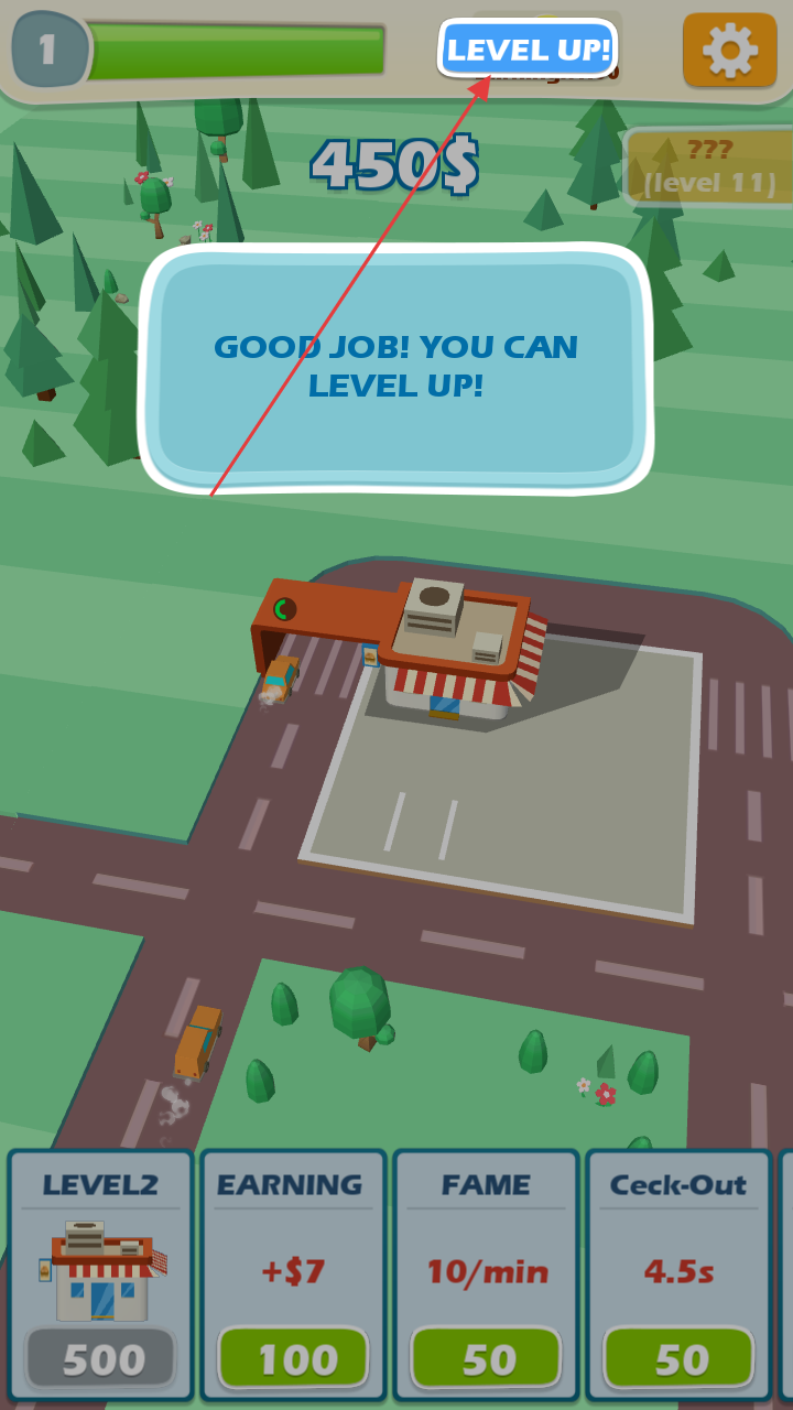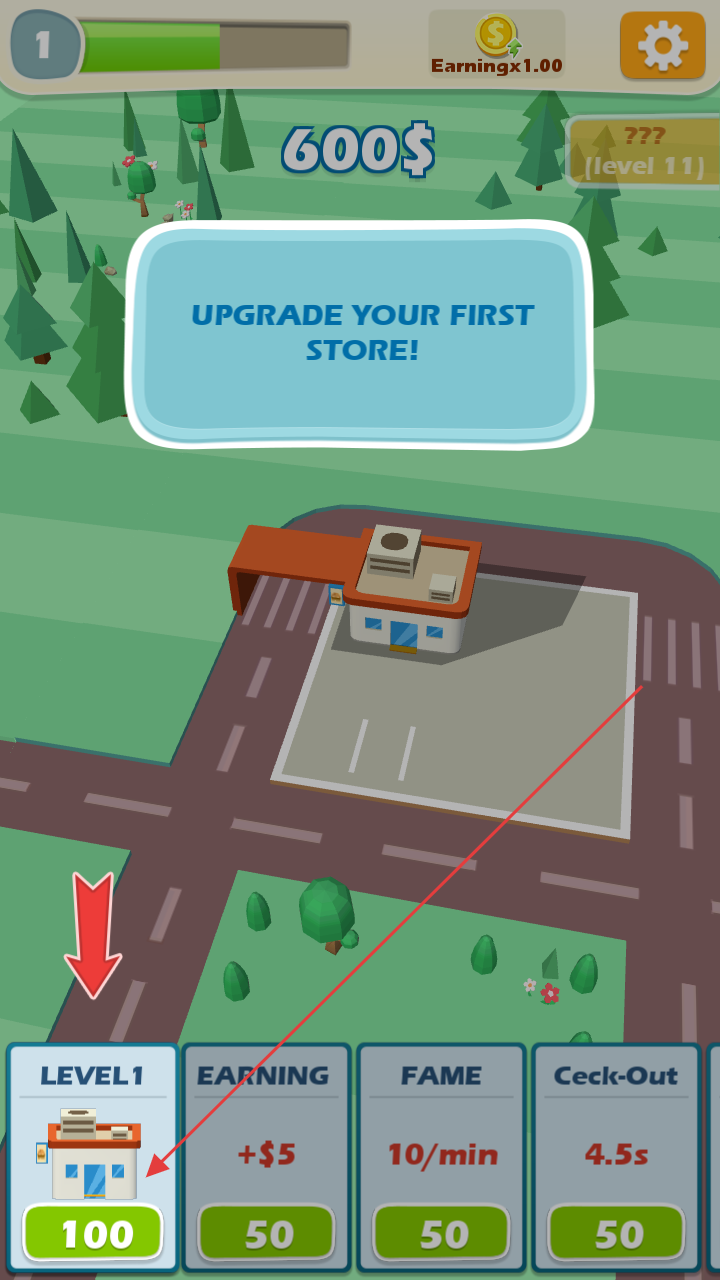 1、游戏玩家拥有初始资金,界面提示,玩家可花费资金(如100)升级店铺。