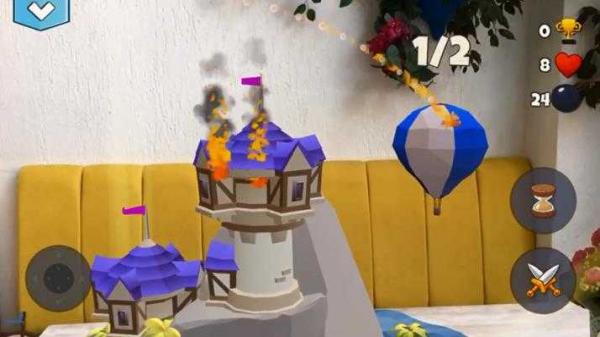 爆炸房间AR是一款基于现实场景的增强现实策略搭防类佳作,用户将在真实房间环境中,通过手机摄像头将沙发、地毯等日常物品转化为战场,操控大炮抵御敌人进攻,切换上帝视角或近距离慢动作观察炮火效果,在指尖操作中体验破坏解压与塔防策略的双重乐趣。