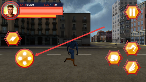 2、游玩中,操控角色在城市街道移动,按箭头指示点击左下角方向控制按钮,可改变角色移动方向。