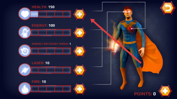 3、进入角色属性界面,按箭头指向,可通过点击“+”号按钮,提升角色属性,增强角色能力。