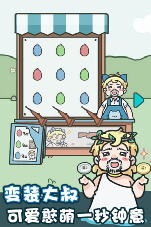 1、萌系画风治愈心灵,游戏采用Q版卡通设计风格,小猫造型憨态可掬,大叔角色可爱搞怪,整体视觉效果温暖治愈。