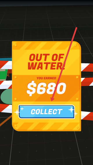 3、当显示“OUT-OF-WATER!”提示游玩结束时,点击“COLLECT”按钮,领取本次游玩获得的金钱奖励。