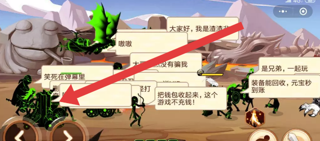 1、进入游戏界面,可看到聊天互动内容(如“大家好,我是渣渣”等),了解游戏社交氛围,同时注意场景中的绿色角色。