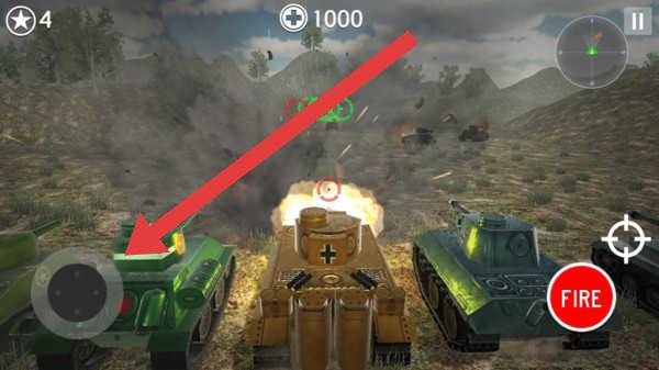 2、滑动屏幕左侧虚拟轮盘,控制坦克向前后左右方向移动,调整站位躲避敌方攻击或寻找有利地形。