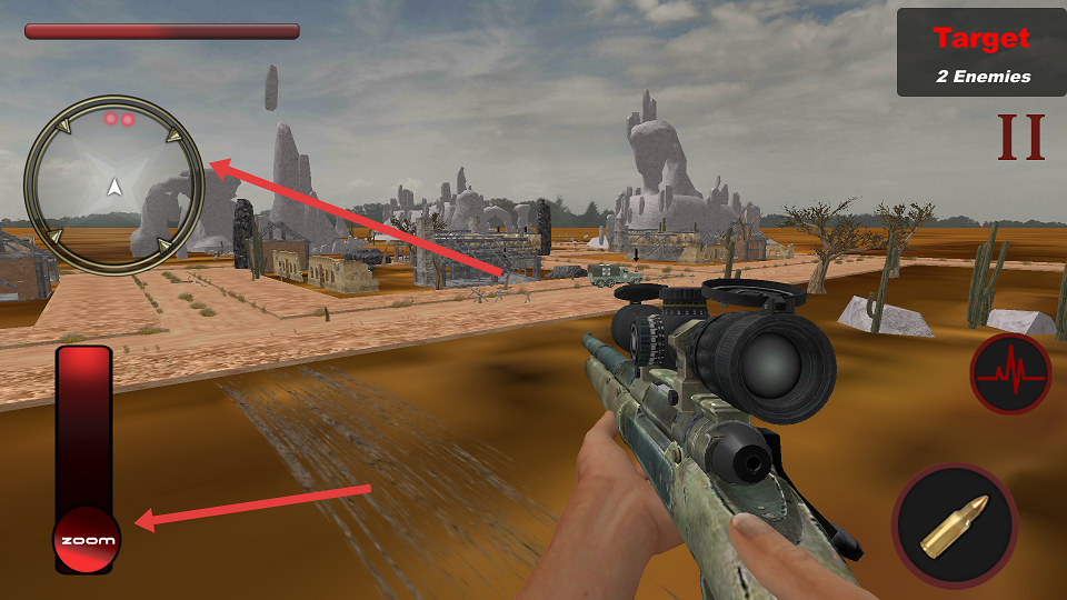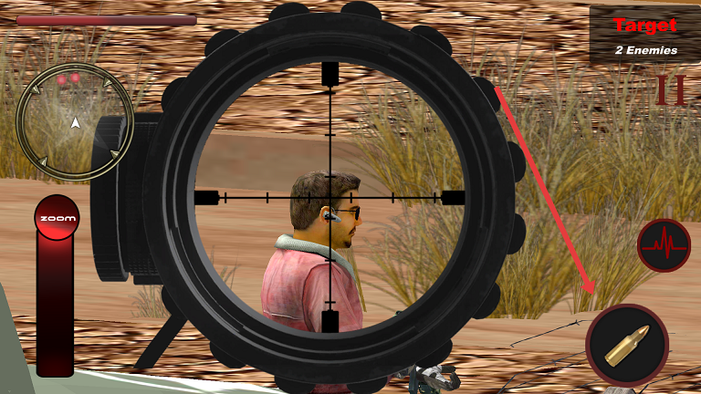 3、推杆开镜放大,屏住呼吸对准马上开火,别忘了另一个目标可能会逃走。