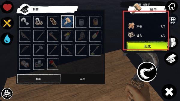 2、木筏防御布局:在木筏四周安装“防鲨网”(消耗绳子与木板),重要物资存储区下方设置尖刺陷阱,降低鲨鱼破坏效率。