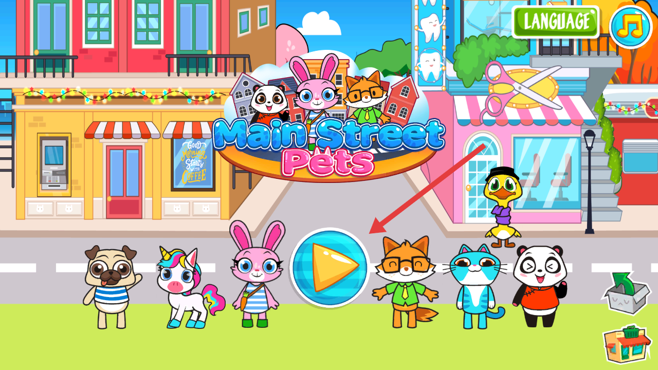 1、在游戏主界面,点击【Main Street Pets】标志下方的蓝色播放按钮,进入游戏场景。