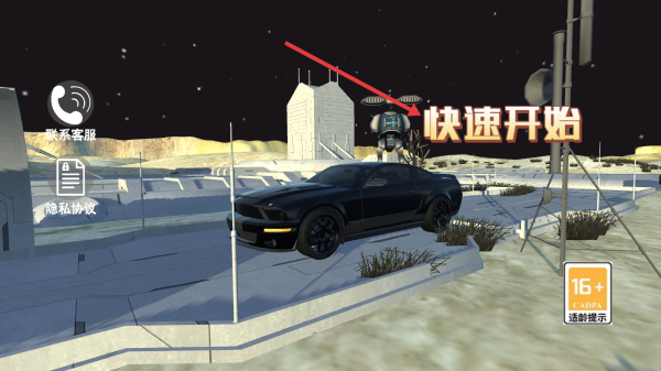 1、在游戏主界面,点击标注【快速开始】的位置,直接进入游戏体验赛车驾驶。