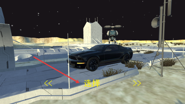 2、点击【选择】按钮,可对赛车等游戏元素进行挑选和设置,为游戏做准备。