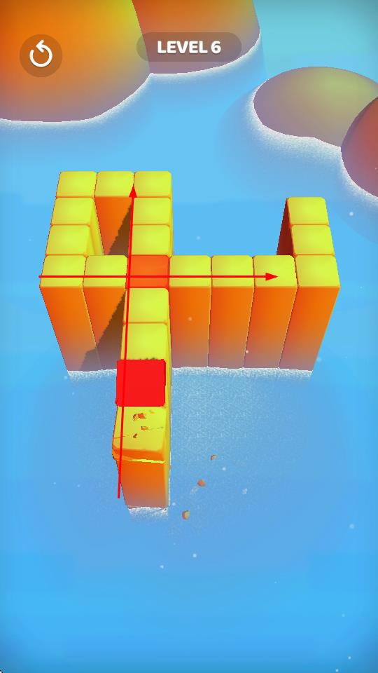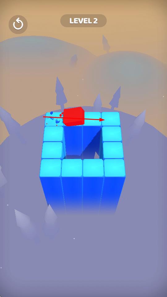 1、流畅滑动操控:通过轻松滑动屏幕,精准控制方块移动方向,使其沿着既定路线撞击并摧毁石柱。