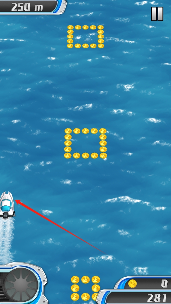 2、左右滑动移动船只,注意收集赛道中的特殊道具,可能用于永久属性提升,利用每日登录奖励获取免费载具试用与加速解锁。
