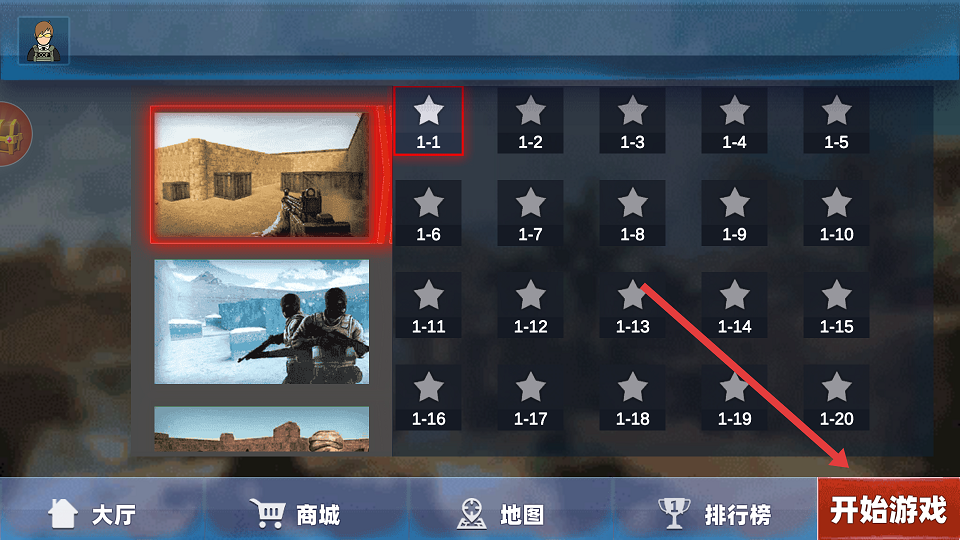 2、选择熟悉的场地关卡继续点击开始游戏,关卡和任务种类丰富拒绝千遍一律。