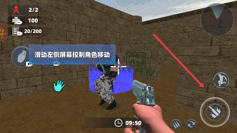 3、进入战场配备教程引导,跟着引导熟悉操作,确保不会被突然击毙。