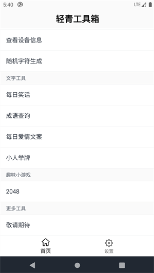 轻青工具箱是一款手机工具箱软件,拥有丰富的小工具给大家使用,都是简单操作就能快速上手使用,随时选择所需要的工具,获得自己想要的结果,自由选择免费使用,包含了设备信息查看、随机字符生成、每日笑话、成语查询等服务。