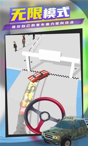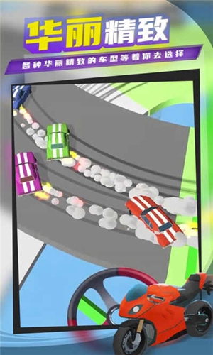 3、休闲与竞技双模式:“休闲模式”适合新手练习漂移基础,“竞技模式”支持实时联机对战,与全球玩家比拼漂移距离、过弯速度等数据,排行榜实时更新竞技实力。