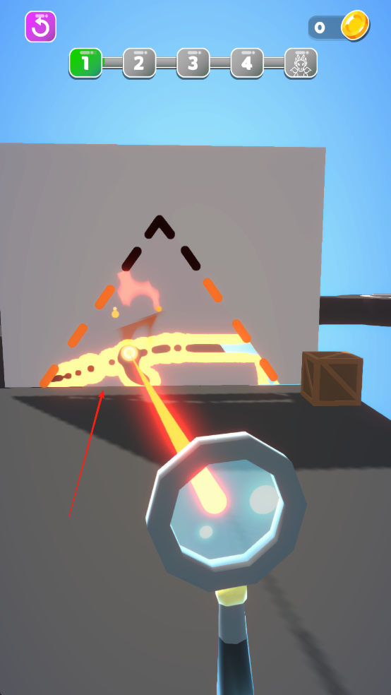 1、进入游戏后滑动屏幕调整放大镜角度,对准场景中的物品,长按屏幕汇聚阳光生成高温射线,点击点燃目标物品。