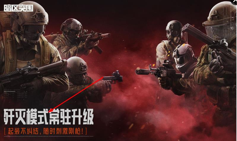 2、滑动屏幕切换至暗区地图界面,点击带有防弹头盔图标的【歼灭模式常驻升级】区域,消耗入场许可后加载进入战场出生点。