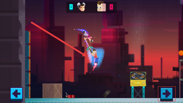 3、在对战场景中,按箭头指向操控角色,利用角色技能攻击对手,注意观察对手动作,争取赢得对战胜利。
