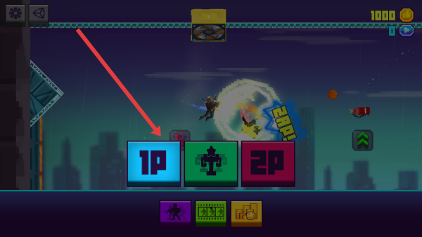 1、打开作品,在初始界面选择游玩模式,点击“1P”按钮进入单人游玩模式。