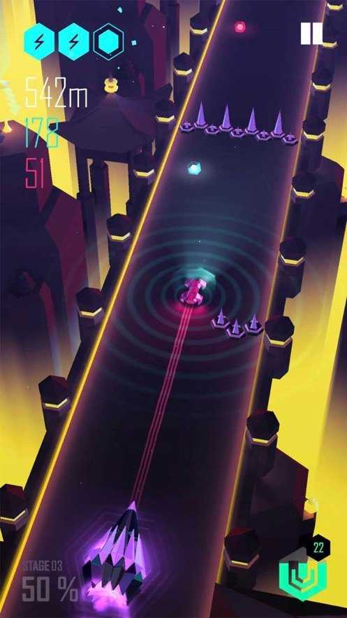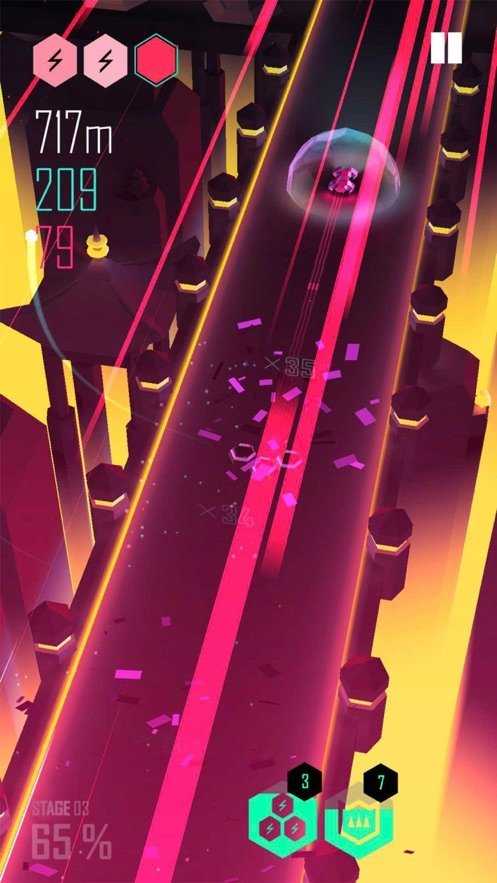 1、音乐节奏联动:赛道变化与障碍出现频率贴合背景音乐节拍,玩家需踩准节奏消除方块,打造视听一体的沉浸体验。