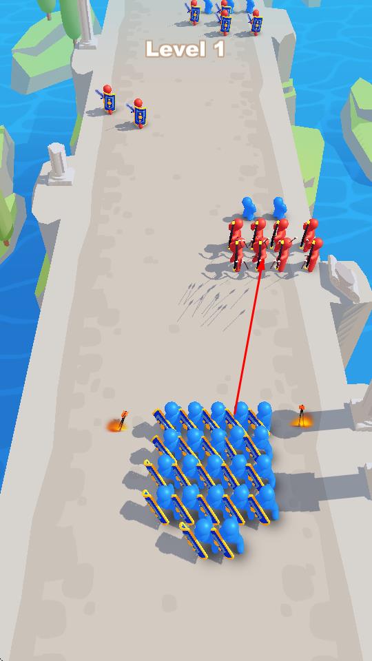 1、玩家操控蓝色小人组成的队伍,在关卡中与红色小人队伍对战,通过合理规划进攻路线,利用队伍优势击败对手。
