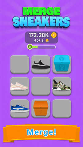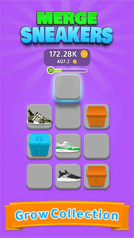 1、合成升级机制:通过拖拽相同鞋子进行合成,解锁更高级别款式,越往后合成的鞋子越接近名牌限量款,满足收集欲与成就感。