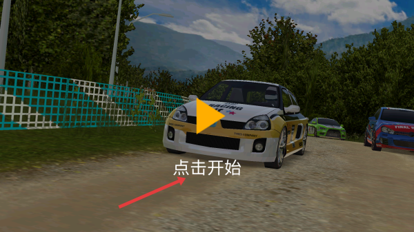 2、进入比赛准备界面,看到有【点击开始】的提示文字及箭头指引,点击该位置正式启动拉力赛。