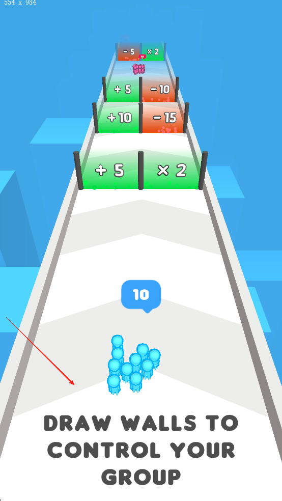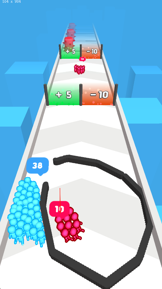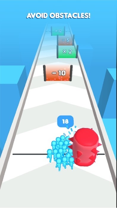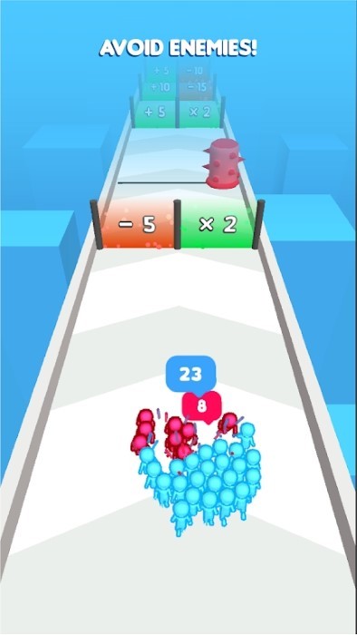 2、人群成长机制:通过“人数增长门”不断扩充队伍规模,从数十人发展至数百人,庞大的人群流动画面带来震撼视觉反馈。