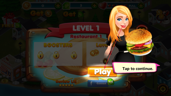 3、在关卡准备界面,根据“Taptocontinue.”提示,点击“Play”按钮进入关卡,开始烹饪游戏任务。