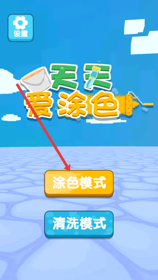 1、打开【天天爱涂色】,在初始界面按箭头指示,点击“涂色模式”按钮,进入游玩关卡选择界面。