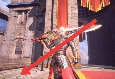1、进入游戏,看到身着华丽战甲、持火焰大剑的角色,处于城堡前场景,熟悉角色初始形象与环境。