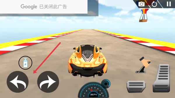 3、驾驶时,利用左下角的转向按钮(如箭头所指),灵活操控赛车方向,确保在赛道上稳定行驶。