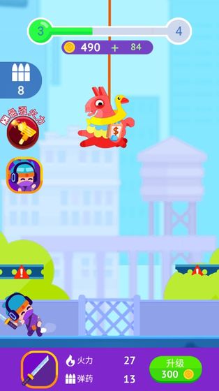 3、在关卡界面,点击“升级”按钮,开始任务,朝着关卡目标努力,留意游戏内限制条件,合理安排操作。