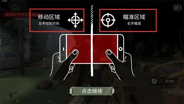 1、下载安装完成之后进入游戏,我们先熟悉一下操作,左边控制方向,右边控制瞄准,以及攻击、换弹键。