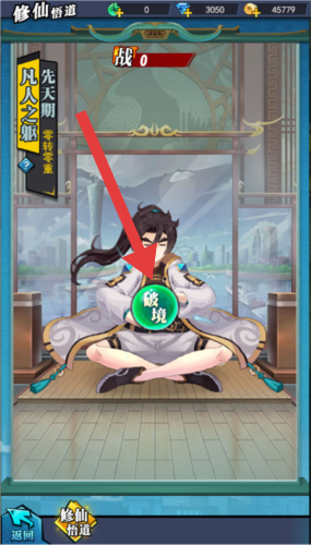 1、游戏中,当角色达到一定条件后,点击【破境】按钮,可突破境界,提升角色实力,解锁新的修仙玩法与功能。