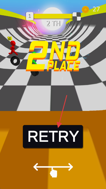 3、比赛结束若获【2ND PLACE】,点击【RETRY】按钮可重新挑战,争取更高名次。