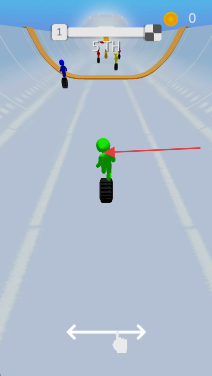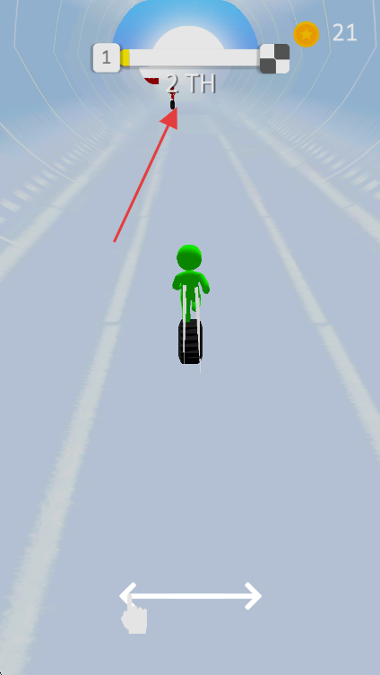 2、在赛道上灵活移动,超越前方对手,同时收集金币,提升比赛排名。