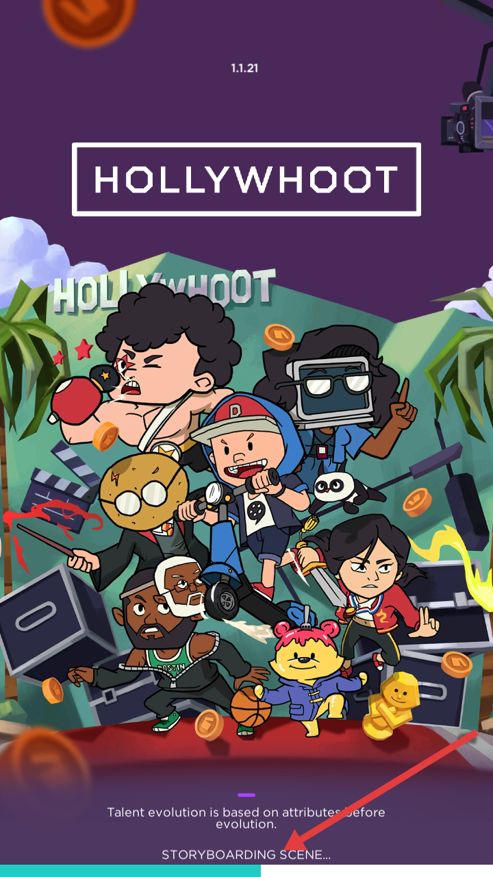 1、进入游戏界面看到【HOLLYWHOOT】,了解游戏名称,关注角色属性对天赋进化的影响。