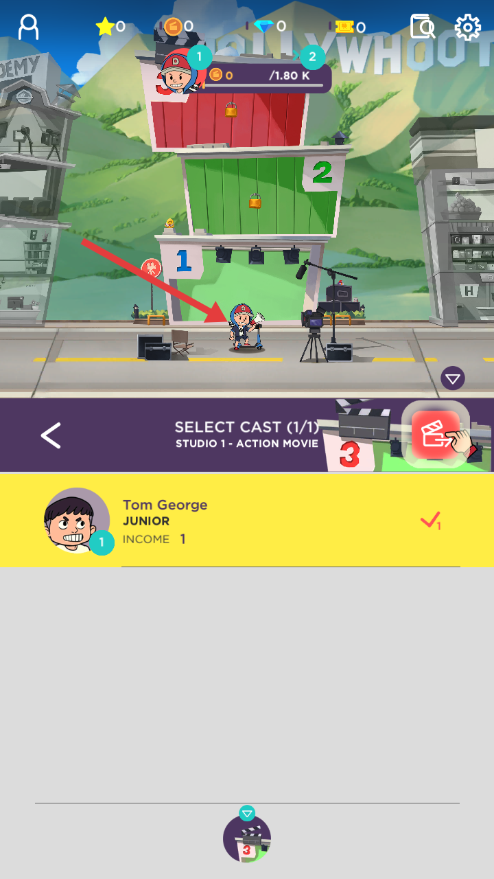 3、在【ACTION-MOVIE】界面,选择演员【JUNIOR】,点击右侧拍摄图标,开始拍摄电影进程。