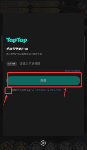 2、然后点击下面勾选用户协议,点击登录即可。